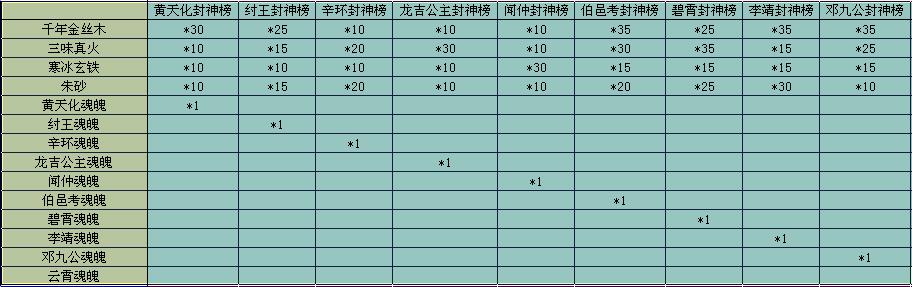 2、高级材料:不同的封神榜,使用不同的材料